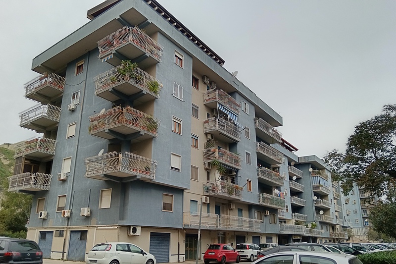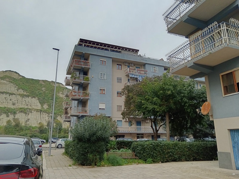 Crotone via t campanella (pressi stadio) appartamento in vendita, molto luminoso, 106 mq quinto piano con ascensore, composto da ampio ingresso, soggiorno, cucina abitabile, ripostigio, studio, 2 vani letto, bagno e 2 balconi, riscaldamento autonomo + climatizzatori, cortile interno condominiale prezzo 125.000